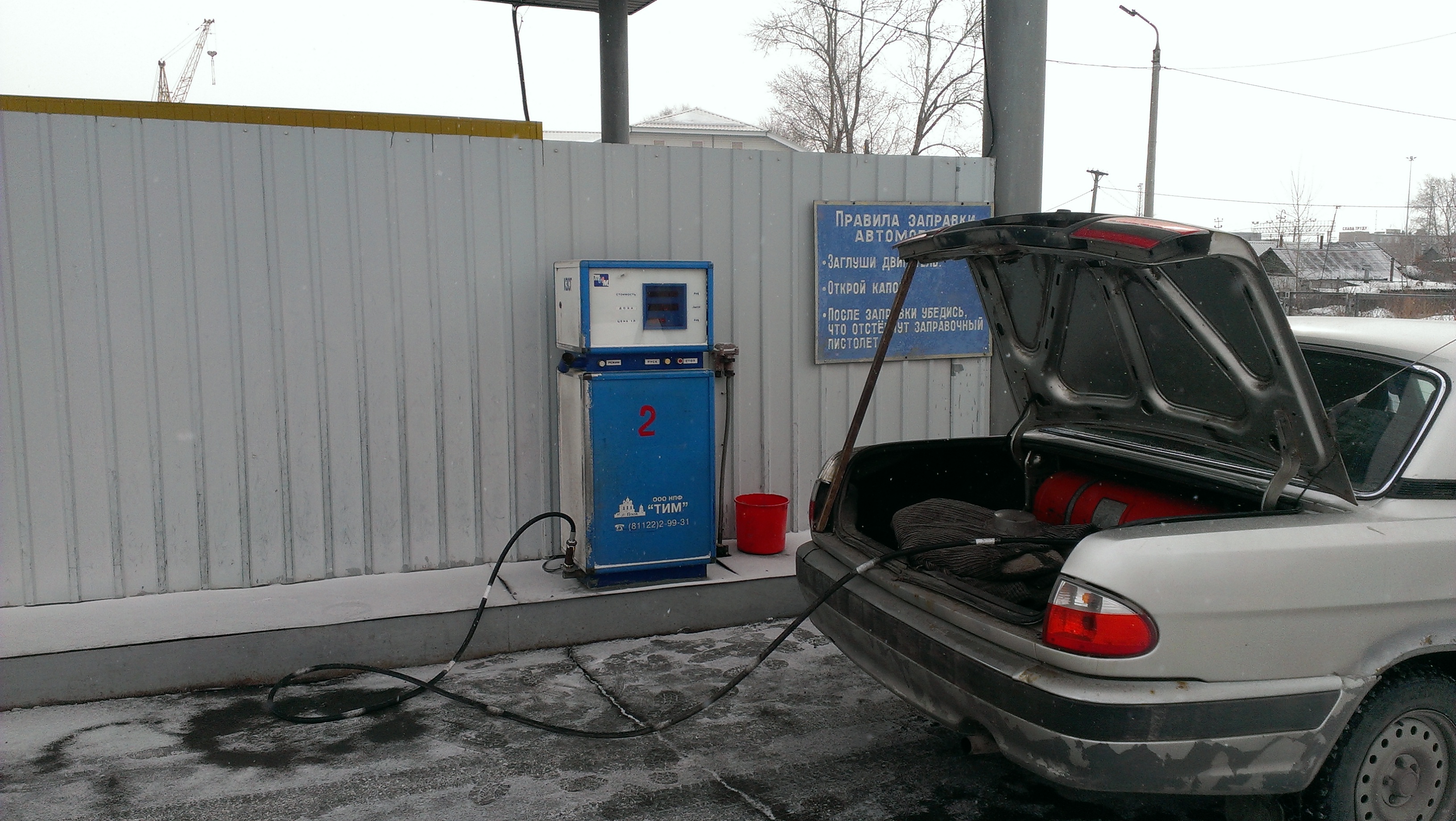 АГЗС работает круглосуточно. Днем на заправке работает заправщик, в ночном режиме самообслуживание.
